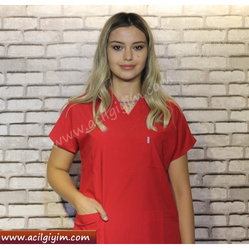 Etiketler: Takım (Cerrahi ) Yaka Kırmızı renk, h-012546, Hemşire takimlari
